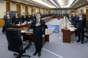 박영재 법원행정처장을 비롯한 법원장들이 25일 오후 서울 서초구 대법원 청사에서 열린 전국법원장회의에서 국민의례를 하고 있다