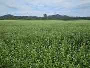 구미시가 올여름 낙동강 체육공원 인근 1만 5,000㎡ 하천부지에 메밀을 파종해 8월 중순부터 꽃이 피기 시작했다. 오는 9월이면 하얀 물결이 절정을 이루며 시민과 관광객의 발길