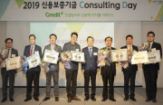 윤대희 신용보증기금 이사장이(오른쪽 네 번째)이 9일 서울 마포구 가든호텔에서 개최된 ‘2019 신용보증기금 컨설팅 데이’에서 수상자들과 기념촬영을 하고 있