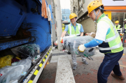 대구 중구가 민선 7기 1주년을 맞아 기념행사를 정례조회로 대체하고 지난 1일 류규하 구청장이 환경미화원들과 함께 동성로 거리정화활동을 펼치고 있다. 중구 제공 대구
