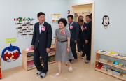 무태조야동 ‘공립 연경 어린이집’이 지난 3일 개원식을 가지고 배광식 북구청장을 비롯한 관계자들이 어린이집 내부를 둘러보고 있다. 북구 제공 대