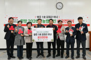 영주 지역 기업 ㈜신도물산 김점곤 대표가 지난 22일 휴천1동 행정복지센터에서 ‘희망2026 나눔캠페인’ 성금 기탁식을 갖고, 휴천1동·휴천2동·휴천3동에 각각 1천만 원씩 3천