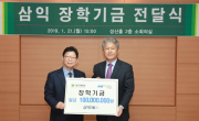 삼익THK 장학기금 전달식에서 진영환 회장(왼쪽)과 김상호 총장(오른쪽)이 기념사진을 찍고 있다. 대구대학교 제공 진영환 삼익THK 회장이 지역 인재 양성을 위해 대