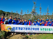 바르게살기운동 봉화협의회 여성회원 40여 명이 지난 28일 상운 문촌리에 위치한 이정례 씨의 사과 과수 농가를 찾아 농촌 일손 돕기 봉사활동을 펼쳤다.