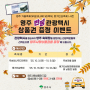 영주시가 여름 축제에 이어 가을 축제 시즌에도 ‘영주 반띵관광택시’를 이용해 축제장을 찾는 관광객에게 최대 2만 원 상당 영주사랑상품권을 증정하는 이벤트를 진행한다.