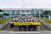 영주시가 지난 8일 시청 전정에서 ‘중대재해 제로화를 위한 3Go 캠페인’을 열고 안전한 근로환경 조성에 대한 의지를 다졌다.