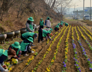 김천 감문 새마을남녀협의회가 21일 새마을 회원 40여 명이 참석한 가운데 봄꽃 심기 행