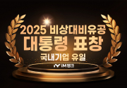 iM뱅크(은행장 황병우)는 행정안전부가 주관하는 \'2025년도 비상대비유공\' 정부포상에서 국내기업 중 유일하게 대통령표창을 수상했다고 29일 밝혔다.iM뱅크는 지난 2022년