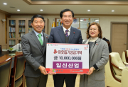 일신산업 송정곤 대표가 지난 27일 경산시청을 방문해 어려운 이웃에게 사용해 달라고 불우이웃돕기 성금 1000만원을 최영조 경산시장에게 전달했다, 경산시 제공 일신산