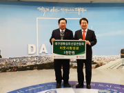 대구경북섬유산업연합회가 대구시에 이웃사랑 성금 1천만원을 기탁하고 있다. 대구경북섬유산업연합회 제공 대구경북섬유산업연합회가 지난 28일 오후 대구시청에서 희망나눔 이