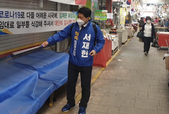 서재헌 민주당 대구 동구갑 지역위원장 측에 따르면 서 위원장은 지난 18일 지역 내 대구 동서시장과 동구시장을 각각 찾아 코로나19 방역활동을 시작하고, 앞으로도 계속 이어나가기로 했다.