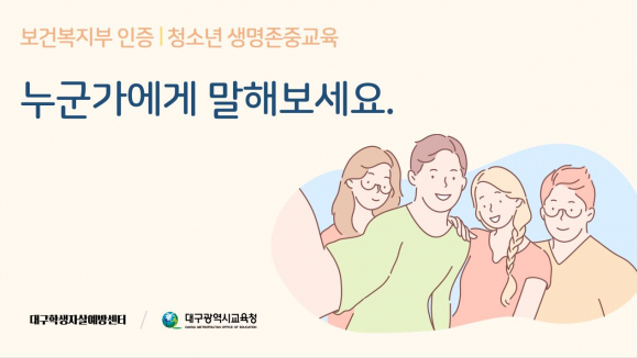 | 대구시교육청은 대구학생자살예방센터(센터장 원승희, 칠곡경북대학교병원 내)와 공동 개발한 자해 위기 청소년을 위한 ‘청소년 생명존중 교육자료’가 이번 달 보건복지부의 최종 인증을 받았다고 28일 밝혔다. 대구학생자살예방센터와 대구교육청이 개발한 교육자료는 코로나19 사태의 장기화로 가정에서 머무는 시간이 늘면서 다양한 형태의 가족 갈등이 발생하고, 원격수업과 등교를 병행하면서 학교생활에서 심리적, 정서적인 어려움을 겪는 등 자해 또는 정서 위기 청소년이 증가하는 추세를 볼 때, 학교 내 효과적인 자살 예방 및 체계적인 생명존중 교육 실시에 많은 도움을 줄 것으로 기대하고 있다. 대구교육청과 대구학생자살예방센터는 자해위기 청소년의 효과적인 감소를 위해 자해 행동의 중단 및 예방을 목적으로 한 ‘청소년 생명존중 교육자료’ 개발에 박차를 가해왔다. 자료 개발은 대구교육청이 칠곡경북대병원에 위탁 운영하고 있는 대구학생자살예방센터에서 주관해 왔으며, 올해 7월 보건복지부 산하의 중앙자살예방센터 주관 자살예방 프로그램 인증 과정을 최종 통과했다. 대구교육청과 대구학생자살예방센터는 이번에 개발 완료한 학생용 교육자료 뿐만 아니라 학부모 대상 생명존중 교육자료도 개발 마무리 단계에 와 있으며, 완성되는 대로 2020년 하반기에 보건복지부 인증을 추진할 예정이다. 하반기까지 학부모용 교육자료도 개발이 완료되면 ‘학생 및 학부모 생명존중 교육자료(2종)’의 현장 활용도를 높이기 위해 2020학년도 겨울방학부터 대구교육청 소속 중·고등학교 교사를 대상으로 강사양성 세미나도 추진할 계획이다. 원승희 대구학생자살예방센터장(경북대병원Wee센터장 겸임)은 “자해 위기 청소년의 경우 정서위기 상태가 자주 발생하고 학교 부적응으로 이어지는 심각한 문제를 안고 있어, 자해에 대한 올바른 이해와 적극적인 개입이 필요하다. 자해 행동에 대한 전문적 개입 방안을 개발해 학교 현장에 체계적으로 적용할 수 있게 돼 다행스럽게 생각한다”고 말했다.