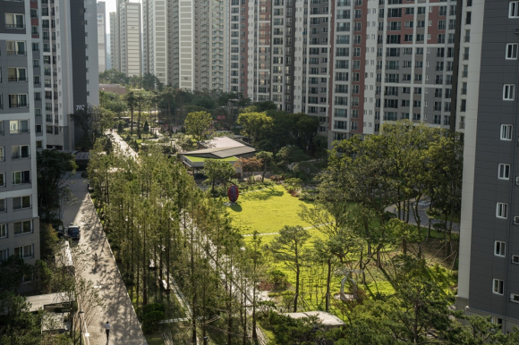 | ↑↑ '운정 화성파크드림 시그니처'에 조성된 '파크드림 파티오'. 화성산업 제공 |