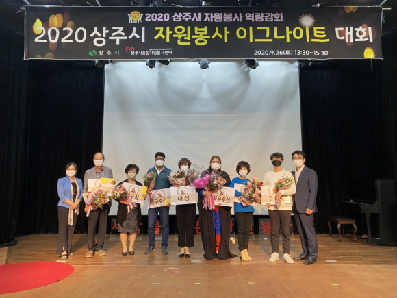 | 상주시종합자원봉사센터(센터장 정하선)는 지난 26일 자원봉사 문화 확산의 불씨에 불을 붙이기 위해 『2020 상주시 자원봉사 이그나이트 대회』를 열었다.(상주시제공) | 상주시종합자원봉사센터(센터장 정하선)는 지난 26일 자원봉사 문화 확산의 불씨에 불을 붙이기 위해 2020 상주시 자원봉사 이그나이트 대회를 열었다. 이그나이트(ignite)는 ‘불을 붙이다’라는 뜻으로 발표자가 5분 동안 자신의 자원봉사 경험을 전달하는 방식의 자원봉사 스토리 발표 대회다. 청중평가단과 심사위원 40여 명 앞으로 고연선(제목 해피바이러스), 김철환(작은 실천), 박경자(꽃보다 아름답다), 이태환(이정표가 될 나의 이야기), 임귀숙(봉사의 보람), 전병곤(상주사랑), 정연화(나를 성장시킨 힘 자원봉사) 등 7명의 자원봉사자들이 대회에 출전했다. 최종 순위는 심사위원 점수와 청중평가단 점수를 합산해 결정했으며 상주 시장상(4)과 상주시 종합자원봉사센터장상(3)을 시상했다. 정하선 자원봉사센터장은 “감동과 울림의 자원봉사 이야기가 시민들 마음속에서 자원봉사의 불씨를 붙이기를 바란다”고 말했다. 심사위원으로 참여한 채인기 사회복지과장은 “발표대회를 통해 고귀한 자원봉사의 가치를 가슴에 새길 수 있는 소중한 시간이었다”고 말했다.오재영기자 |