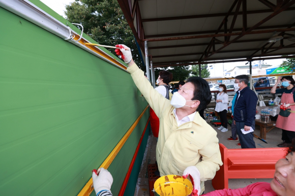 | 성주군 이웃사촌 복지센터에서는 지난 24일 선남면 도흥3리 주민 40여명이 참석한 가운데 방천걸 쉼터정비사업을 실시했다. 이날 행사에 앞서 지난 일주일동안 도흥3리에서 자체 조직한 소모임 방천밴드 회원과 청년회 회원들이 대청소를 실시,며 쉼터와 외부공간을 분리했던 샌드위치 판넬 등을 교체하고, 노인회원들과 부녀회원들이 모여 판넬과 의자에 페인트 칠을 하고 그림작업을 실시했다. 이병환 성주군수는 “코로나19로 마음 놓고 어디 가지도 못하고 마음도 우울해지기 쉬운 이 때에 성주군 이웃사촌복지센터와 주민들이 함께 쉼터정비를 통해 어르신들의 지친 마음을 달랠 수 있었으면 좋겠다”며 “주민들과 원활한 소통으로 지역문제를 예방하고 해결하여 인정이 넘치는 복지 공동체 구축을 위해 앞으로도 지속 노력하겠다”고 말했다. 김명수 기자 |