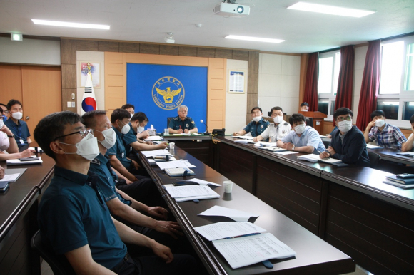| ↑↑ 청도경찰서가 지난 12일 회의실에서 9월 치안성과 향상을 위한 보고회를 열고 있다. 청도경찰서 제공 |