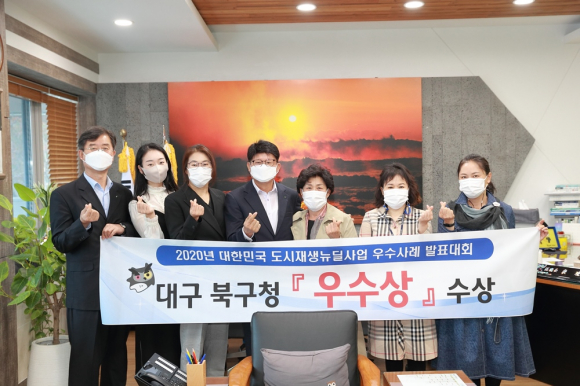 | 대구 북구청이 지난 14일 국토교통부가 주최한 '2020 대한민국 도시재생뉴딜사업 우수사례 발표대회'에서 사업화 부문 우수상을 수상했다고 밝혔다. 이번 대회는 전국 광역, 지자체가 신청한 본선 11건의 도시재생뉴딜사업 우수사례들이 경합을 벌인 가운데, 북구에서 발표한 어르신들이 기억하고 청년들이 기록하는 '복현유사'가 영예의 우수상을 수상했다. 북구청과 복현1동 도시재생 현장지원센터(센터장 김은윤), 주민협의체(대표 강순덕)가 함께 민·관 협력 거버넌스를 통해 추진하고 있는 도시재생뉴딜사업 일환으로 시작한 ‘복현유사’는 삼국유사를 차용해 피란민촌 어르신들의 생애사와 마을공동체의 역사를 설화·동화의 형태로 각색한 이야기책으로, 지역 공동체를 활성화하기 위한 주민들의 정체성과 소속감을 강화하기 위한 사업이다. 배광식 북구청장은 “이번 수상을 계기로 피란민촌의 재탄생 어울림 마을 복현을 실현하기 위한 도시재생뉴딜사업을 추진하는데 있어 한층 더 탄력을 받게 될 것으로 생각된다”며, “앞으로 도시에는 활력을 지역에는 주민역량강화를 통한 일자리 창출로 연결될 수 있도록 주민, 지역청년들과 함께 지속가능한 도시재생방안을 찾아 나가겠다”고 말했다.