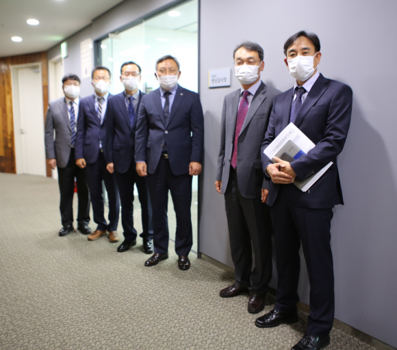 | ↑↑ 한국농어촌공사 감사실은 나주본사10층에 영상감사장을 마련하고 언택트시대 자체감사활동 강화에 나섰다(조익문상임감사-사진오른쪽에서 세번째). |
