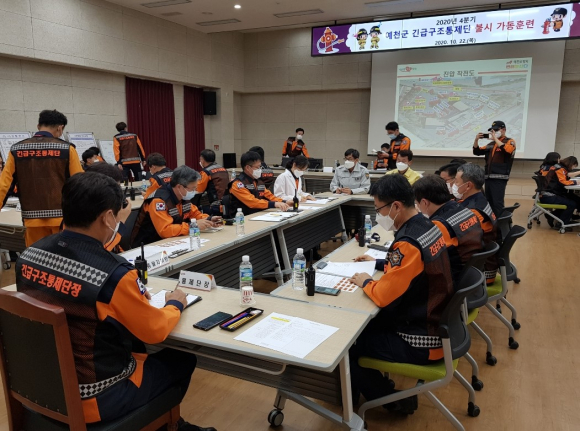 | 예천소방서 긴급구조통제단 불시 가동훈련<예천소방서 제공> | 예천소방서는 지난 22일 청내 다목적실에서 관내 청소년수련관을 대상으로 불시 가동훈련을 실시했다. 불시 가동훈련은 별도의 시나리오 없이 진행되는 훈련으로 각종 재난 발생에 따른 현장 대응능력을 높이고, 불시 재난 발생 시 초기대응능력을 점검하기 위해 시행되는 훈련이다. 훈련은 코로나19 감염예방을 위해 참석인원을 최소화하여 진행했으며, 예천군청소년수련관 대형화재로 다수 사상자가 발생한 상황을 가정해 진행했다. 훈련 중점사항은 △재난현장 긴급구조 대응활동능력 제고 △통제단 각 부․반별 임무숙지 및 역할수행능력 향상 △불시 재난 초기대응능력 점검 △응급의료소 설치 및 다수 사상자 발생에 따른 대처능력 점검 등이다. 윤태균 서장은 “실제 재난과 같은 상황을 설정해 불시에 부여되는 메시지를 해결하면서 현장대처 능력을 향상시킬 수 있는 좋은 기회였으며, 지속적인 훈련으로 각종 재난사고 대비 위기능력을 강화해 군민의 생명과 재산을 보호하는데 최선을 다하겠다”고 말했다.
