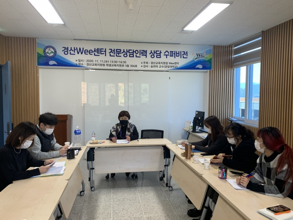 경산교육지원청(교육장 이용만) Wee센터가 11일 청 학생교육지원관 304호에서 Wee센터 전문상담인력들을 대상으로 ‘2020년 Wee센터 전문상담인력 상담 수퍼비전’을 실시했다.