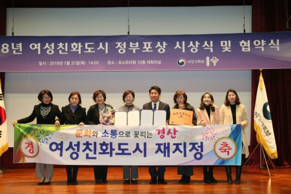 | 경산 여성친화도시 재지정.<자료사진> | 경산시의 여성 인구(2018년 기준)는 10만 8666명으로 전체 인구(21만 7780명) 대비 49.9%인 것으로 조사됐다. 또 주택 소유자 6만 1813명 중 여성은 2만 8078명(45.4%)으로 나타났다. 12일 경산시와 동북지방통계청이 발표한 ’제2회 경산시 여성통계‘에 따르면 국민기초생활보장 수급자는 전체 7141명 중 여성이 4072명(57%)에 달했다. 여성 고용보험 피보험자수는 2만 5141명으로 시 전체 피보험자 6만 2812명의 40%를 차지했다. 경산 주소지 여성의 연령별 혼인율은 20대 후반이 62%로 가장 높은 것으로 나타났다 지난 2018년 한해 동안 시의 전체 사망자 1560명 중 여성사망자는 688명이었다. 이번에 발표된 경산시의 여성통계는 지난 2018년 주민등록기준으로 만 19세 이상 여성의 인구 및 가족, 경제참여, 주거와 복지, 지역생활 만족도 등 7개 부문, 88개 항목으로 구성돼 있다. 경산시 여성통계는 ’여성친화도시‘로 선정된 경산의 여성관련 정책 개발과 추진을 위한 객관적 기초자료로 활용된다. 황보문옥 기자 |