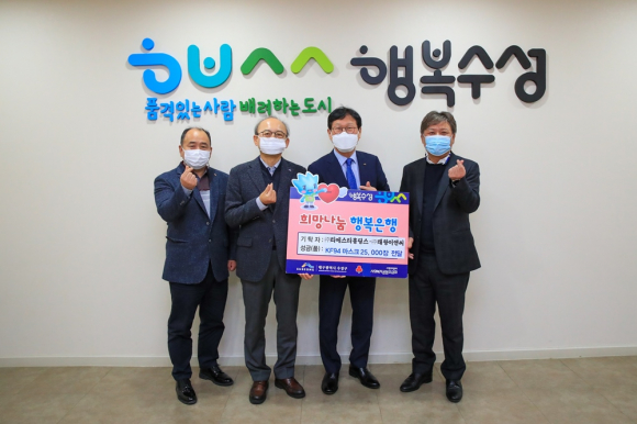 지난 20일에는 대구 수성구청을 방문해 KF94 마스크 2만 5000장을 전달했다.