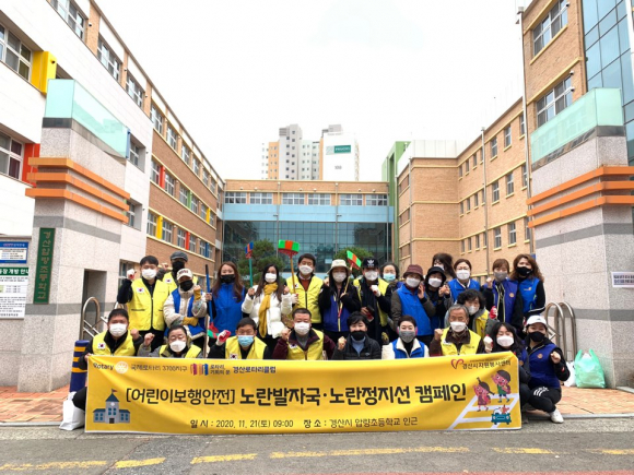 경산시자원봉사센터(소장 서금희)와 경산한솔로타리클럽(회장 이선주), 경산로타리클럽(회장 이무병)이 지난 21일 옥곡초등학교와 압량초등학교를 찾아 ‘어린이 보행 안전, 우리마을 노란발자국 캠페인’ 을 실시했다.