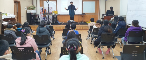 | ↑↑ 청도 덕산초등학교에서 청도도서관 주관으로 찾아가는 문화공연이 펼쳐지고 있다. |