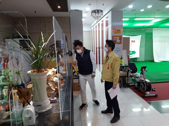 | 문경 코로나19 극복 2차 감염병 예방시설 지원사업을 시행한다. 관계공무원이 현장점검을 하고있다(문경시제공)) |