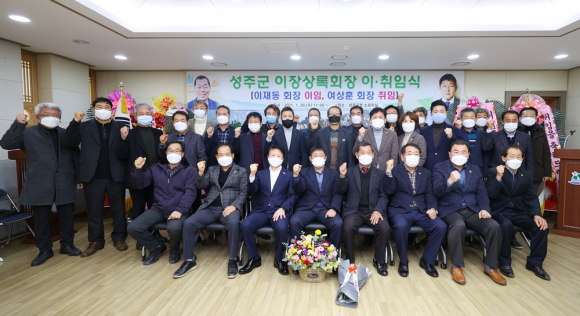 | ↑↑ 성주군 이장상록회장 이ᐧ취임식을 하고 기념촬영하고 있다. |