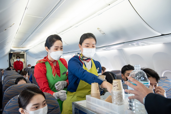 | ↑↑ 대구한의대 항공서비스전공 학생들이 기내서비스를 체험을 하고 있다. 대구한의대 제공 |
