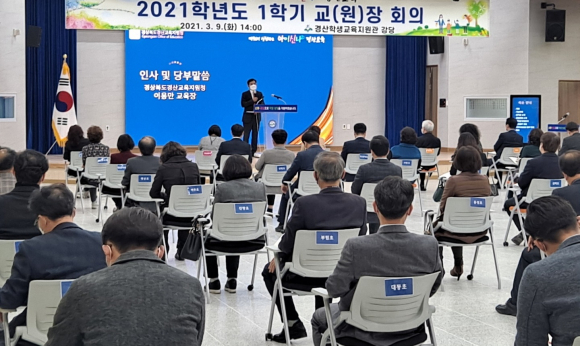| 경산교육지원청(교육장 이용만)은 9일 학생교육지원관 강당에서 공립유치원 원장과 초·중·고, 특수학교 교장을 대상으로 신학년도 1학기 학교장 회의를 개최했다고 밝혔다. 이날 회의에 참석한 각급 학교장은 철저한 방역 속에 준비한 신학년도 교육과정 운영에 대한 정보를 공유했다. 또한, 2021학년도에는 코로나19 등 비상 상황에서도 안전한 학교환경을 구축해 지속적이고 정상적인 교육과정이 운영돼야한다는데 한 목소리를 냈다. 올해는 교육지원청이 실질적으로 학교를 지원하는 원년이 되도록 하기 위해 새롭게 출범한 학교지원센터에서는 장학사 2명, 주무관 4명이 교사의 업무를 경감해주는 학교 지원 과제를 지속적으로 발굴 중이다. 이용만 교육장은 “학교에서 철저한 방역과 교육과정 계획을 수립해 새학년도 교육과정 운영을 차질없이 진행해 준 경산교육가족에게 고맙다”며, “특히 그동안 실시간 원격수업 연수를 통해 항시 원격수업을 할 수 있도록 준비해온 만큼 온·오프라인에서 안정된 교육과정을 운영해 주길 바란다”고 당부했다. 황보문옥 기자 |