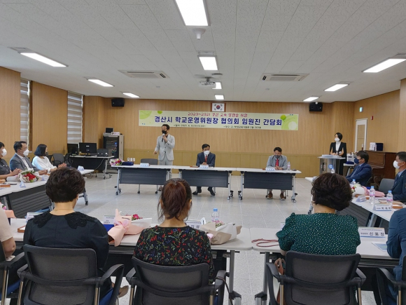 | ↑↑ 경북도경산교육지원청이 지난 9일 학생교육지원관에서 학교운영위원장협의회 임원진과 업무협의 간담회를 가지고 있다. 경산교육지원청 제공 |