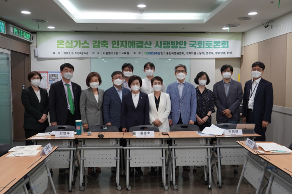 | 더불어민주당 탄소중립특위원회와 노웅래·양경숙·양이원영·허 영의원이 주최한 ‘온실가스감축인지 예·결산 시행방안 국회토론회’가 충실한 정책 수립방안을 모으며 성공적으로 마무리됐다. 이날 사회를 맡은 서울대 환경대학원 홍종호 교수는 인사말을 통해 과거 경제부처는 환경마인드가 없고, 환경부처는 경제마인드가 결여돼있는 이분법적 괴리감을 느낀 바 있다고 소회를 밝혔다. 이어 홍 교수는 “발제자 및 토론자 여러분이 준비한 충실한 내용을 바탕으로 국민들께 생소한 인지 예·결산제도에 대한 이해를 확산시키며 미래지향적인 경제재정과 기후변화 대응을 위한 온실가스감축인지 예·결산제도를 구체화할 수 있을것으로 기대한다”고 인사를 대신했다. 첫 발제에 나선 숙명여대 기후환경융합과 최영수 교수는 온실가스감축인지 예·결산 제도 도입에 대해 ‘미래세대를 위한 우리의 행동’이라 의미있게 평가했다. 이어 발제에 나선 대전 대덕구 박정현 구청장은 “온실가스감축인지 예·결산 제도 도입은 굉장히 훌륭한 선택이며 이를 실현한 탄소중립특위 위원들에게 감사하다”고 했다. 그는 “무엇보다 성공적인 제도 시행을 위해서는 탄소인지예산제에 대한 주민참여 확대와 수용성 강화가 뒷받침 돼야한다”고 덧붙였다. 첫 토론자인 서울연구원 유정민 박사는 “배출사업(혹은 잠재적 배출사업)에 대해서는 감축 대안을 마련하면서 이에 필요한 예산이 반영될 수 있도록 하는 ‘기후예산 의사결정 체계’를 마련하는게 핵심이다”고 지적했다. 다음 토론자인 경기개발연구원 고재경 연구위원은 지난 2020년부터 경기도가 시행하고 시범운영하는 사업과 관련한 논의를 진행했다. 고 연구위원은 현재 경기도는 도비 10억 원 이상 자본보조사업 약 200여개 중 온실가스의 다량 배출이 예상되는 73개 사업에 대해 온실가스 감축 체크리스트를 활용한 탄소인지예산 시범운영을 실시하는 중이라고 설명했다. 기후솔루션 윤세종 변호사는 “원칙적으로 배출 감축과 증가 효과 모두 평가해야 하며 온실가스 감축 촉진 사업 예산 우대 뿐 아니라 배출 촉진 사업에 대한 예산 억제가 필요하다”며 “나아가 중공업 및 발전설비·건설·조선 등 화석연료 개발과 가치사슬(value chain) 비중이 높은 산업에 대한 구조조정을 유도하는 인지예산제가 필요하다”고 조언했다. 이날 토론회는 더불어민주당 탄소중립 특위 위원장인 송영길 당대표의 영상축사와 국회 원내 수석부대표를 겸직하고 있는 김성환 탄소중립특위 실행위원장, 공동주최자인 양경숙 의원, 양이원영 의원이 참여해 진행됐다.