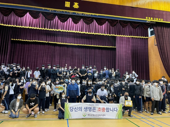 | ↑↑ 청도 모계중학교가 전교생을 대상으로 매달 청도군정신건강복지센터 강사 4~6분을 초빙해 ‘2021 생명존중 및 마음성장학교’를 운영하고 있다. 청도군 제공 |