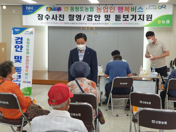 | 동청도농협이 지난 15일 한가위 추석명절을 앞두고 관내 농업인을 대상으로 장수사진 촬영과 검안 및 돋보기 안경을 지원하는 ‘농업인 행복버스’ 사업을 실시했다.