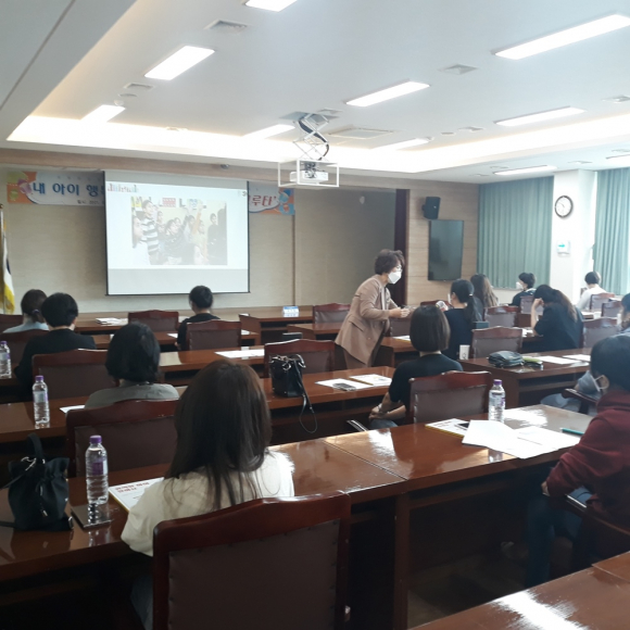 이번 연수는 영천중앙유치원 박명희 수석교사가 내 아이 행복하게 키우는 ‘그림책 하브루타’ 방법으로 가정안에서 이뤄지는 인성교육은 하브루타가 답이라는 경험을 제공한 연수였다.