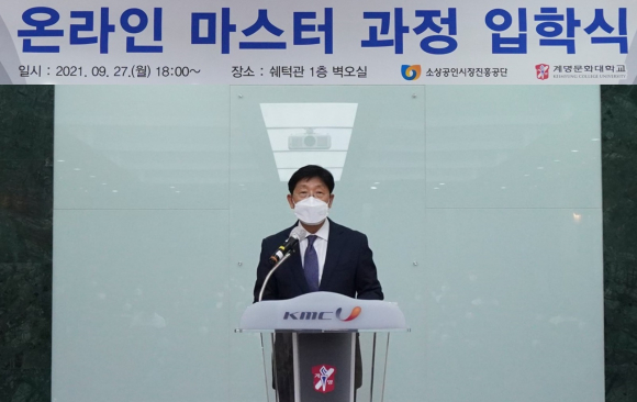 | 계명문화대(총장 박승호)가 지난 27일 쉐턱관 벽오실에서 2021년 소상공인 온라인 특성화대학 사업 일환으로 '온라인 마스터 과정' 입학식을 열고 본격 운영에 들어갔다.