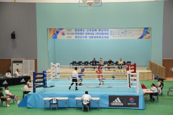 | 예천군 복싱협회는 지난 17일 ~ 19일까지 예천진호국제양궁장내 문화체육센터 특설링에서 제103회 전국체육대회에 출전할 경상북도 대표 2차 선발전 및 2022 예천군수배 생활체육복싱대회, 2022 경상북도 교육감배 복싱대회를 개최했다.