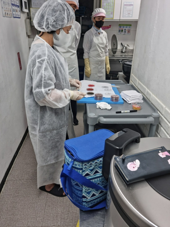 시는 식중독 간이키트를 이용해 조리기구의 미생물검사(살모넬라, 대장균, 황색포도상구균)도 병행 실시한다.