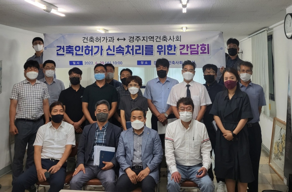 | 경주시 건축허가과는 지난달 29일 경북도 건축사협회 경주시 지역건축사회, 경주시 토목설계 협의회와 건축 관련 인·허가의 신속처리와 애로사항 청취를 위한 간담회를 개최했다고 밝혔다.