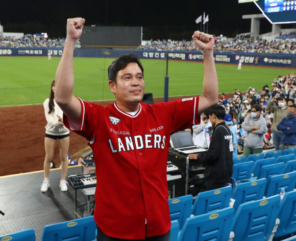 지난 5일 서울 잠실구장에서 SSG 랜더스의 정규 시즌 우승 확정 후 열린 기념행사 참석 이후 3일 만의 직관이다.