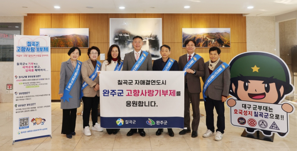 칠곡군은 지난 8일 자매결연 도시 완주군에 고향사랑기부제 응원의 메시지를 보냈다.