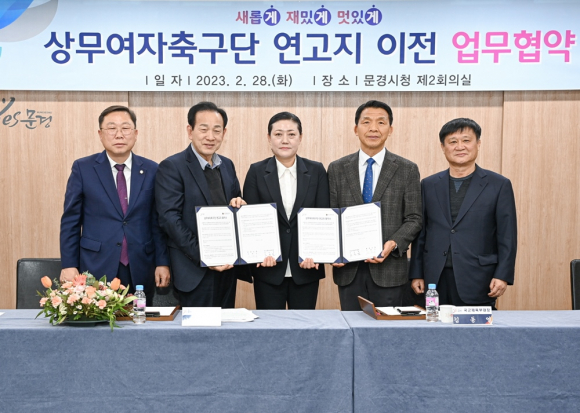 | 문경시, 상무여자축구단 연고지 지원 업무협약 체결했다(문경시제공) | 문경시는 지난 달 28일 시청 제2회의실에서 상무여자축구단 연고지 이전을 위해 국군체육부대와 업무협약을 체결했다.