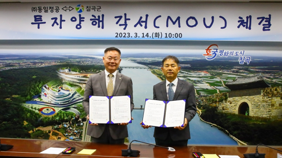 | ↑↑ 칠곡군-동일정공 투자양해 각서 (MOU) 체결<칠곡군 제공> |