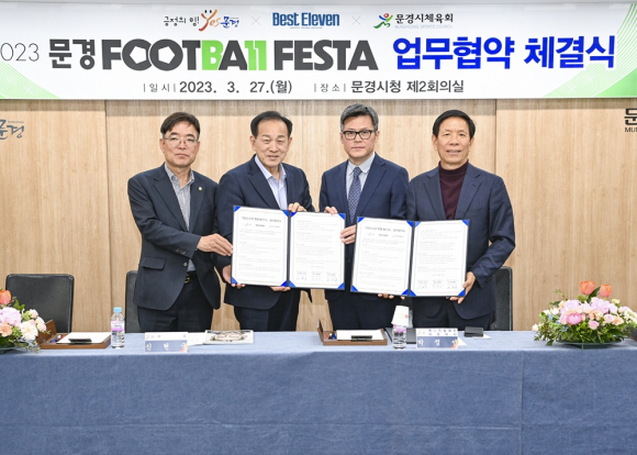 문경시는 지난 27일 유소년 축구 활성화의 일환으로 국내 유일의 축구 전문지 ‘베스트 일레븐’과 '2023 문경 풋볼 페스타'협약식을 가졌다.