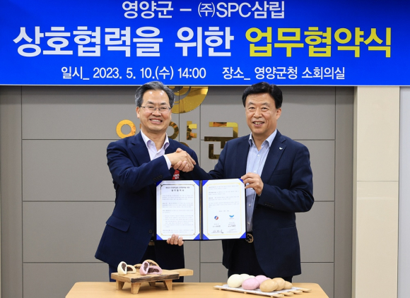 | 영양군과 ㈜SPC삼립은 10일 영양군청 소회의실에서‘음식디미방 상화법 단품 개발 및 상품화를 위한 업무협약’을 체결했다.