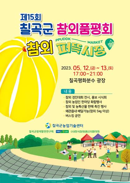 칠곡군은 지난 12일부터 13일까지 오후 5시부터 9시에 칠곡평화분수광장에서 제15회 칠곡군 참외품평회와 참외 퍼뜩시장(농·특산물 직거래 장터)를 개최한다.
