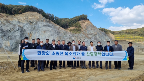 | ↑↑ 산림청의 채석단지 경제성평가 등 애로 해소를 위한 현장방문 모습.<산림청 제공> |