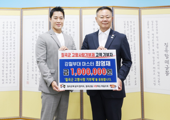 | 강철부대 등 군(軍) 관련 예능 프로그램에서 알토란 같은 활약을 펼치며 인기가 고공행진 중인 방송인 최영재(41) 씨가 6·25 최대 격전지였던 칠곡군을 응원하고 나섰다. 최 씨는 지난 23일 칠곡군청을 찾아 김재욱 군수와 기탁식을 개최하고 고향사랑기부금 100만 원을 전달했다. 최 씨는 대통령 경호를 맡았던 사진이 국내 언론과 영국 텔레그래프, 뉴욕 포스트 등 외신에 소개되면서 꽃미남 경호원, 훈남 경호원이라는 수식어가 붙었다. 친숙하고 반듯한 이미지로 강철부대 등 다양한 매체를 통해 활발한 방송활동을 이어가고 있다. 최 씨와 칠곡군의 인연은 20여 년 전으로 거슬러 올라간다. 최 씨는 어릴 적 칠곡군에서 살았으며, 집 근처에 있는 다부동전적기념관을 방문하고 대한민국을 위해 봉사하기 위해 군인의 꿈을 조금씩 키워나갔다. 그의 부친 최상열 씨는 현재 칠곡군 동명면에서 이장을 맡아 주민과 행정의 가교역할을 하고 있다. 최 씨는 부모를 만나기 위해 칠곡군을 수시로 찾고 있으며, 각종 방송에 출연해 다부동전투 의미를 알리는 등 칠곡군 홍보대사의 역할도 자처하고 있다. 최 씨는“군인을 꿈꾸거나 현역 군인은 반드시 칠곡을 찾아 호국 명소를 들러 보길 바란다”며 “호국정신을 일깨워 준 칠곡의 발전을 바라는 마음으로 기부에 동참했다”고 밝혔다. 김재욱 군수는 “대한민국이라는 비행기는 진보와 보수라는 양 날개로 날고 있다”며 “광주가 민주화의 성지이듯 칠곡을 대한민국을 대표하는 호국의 성지로 가꾸어 갈 것”이라고 화답했다. 한편, 고향사랑기부제는 개인이 고향(주소지 지자체 이외 지역)에 기부하면 세액공제와 지역특산품을 답례품으로 받을 수 있는 제도로, 기부금은 지역발전 및 복지, 문화, 예술, 지역 활성화 사업에 활용된다. 기부를 희망하는 사람은 ‘고향사랑e음’사이트와 전국 농협지점을 방문해 기부 지자체를 선택해서 기부하면 된다. 이재명 기자 |